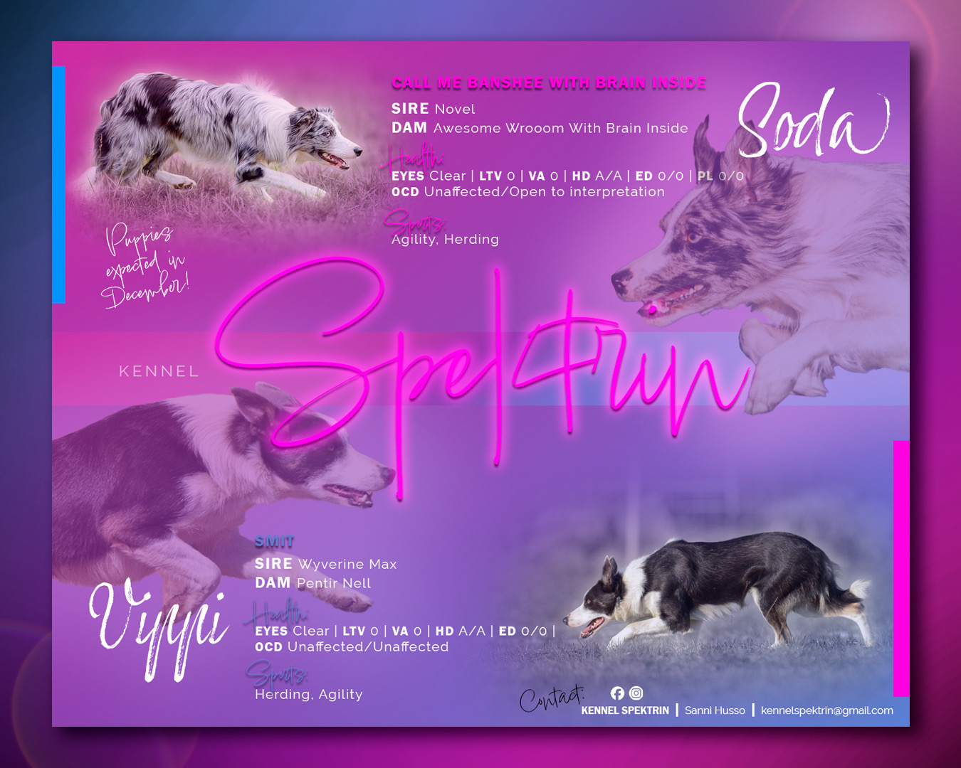 Pentue syntyi 13.12.2024. Synnytys sujui Sodalta hienosti täysin itsenäisesti, ja pentueeseen syntyi viisi tervettä pentua, joista kolme urosta sekä kaksi narttua. Synnytystä odoteltiin alkavaksi lähes viikon ajan.